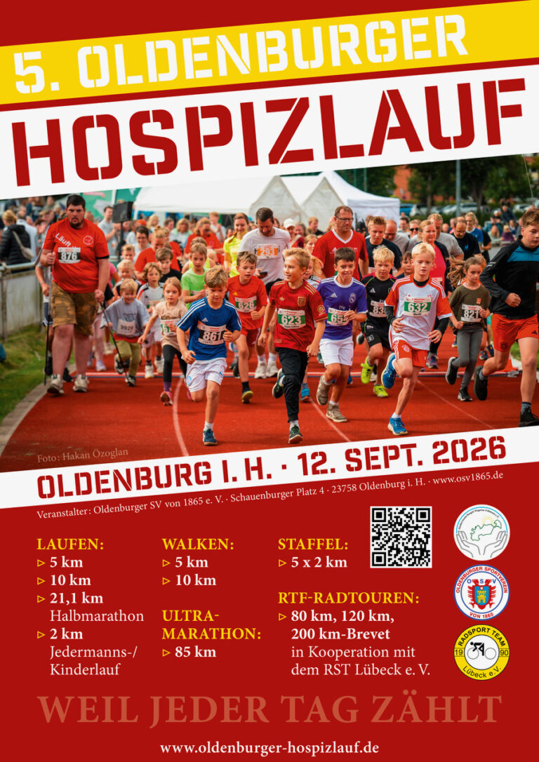 Startnummern: Die Ausgabe der Startnummern erfolgt am 11.09.2025 auf dem Sportplatz des Oldenburger Sportvereins OSV 1865, Schauenburger Platz 4, 23758 Oldenburg in der Zeit von 15.00 bis 18.00 Uhr sowie am 12.09.2026 bis eine halbe Stunde vor dem jeweiligen Start.